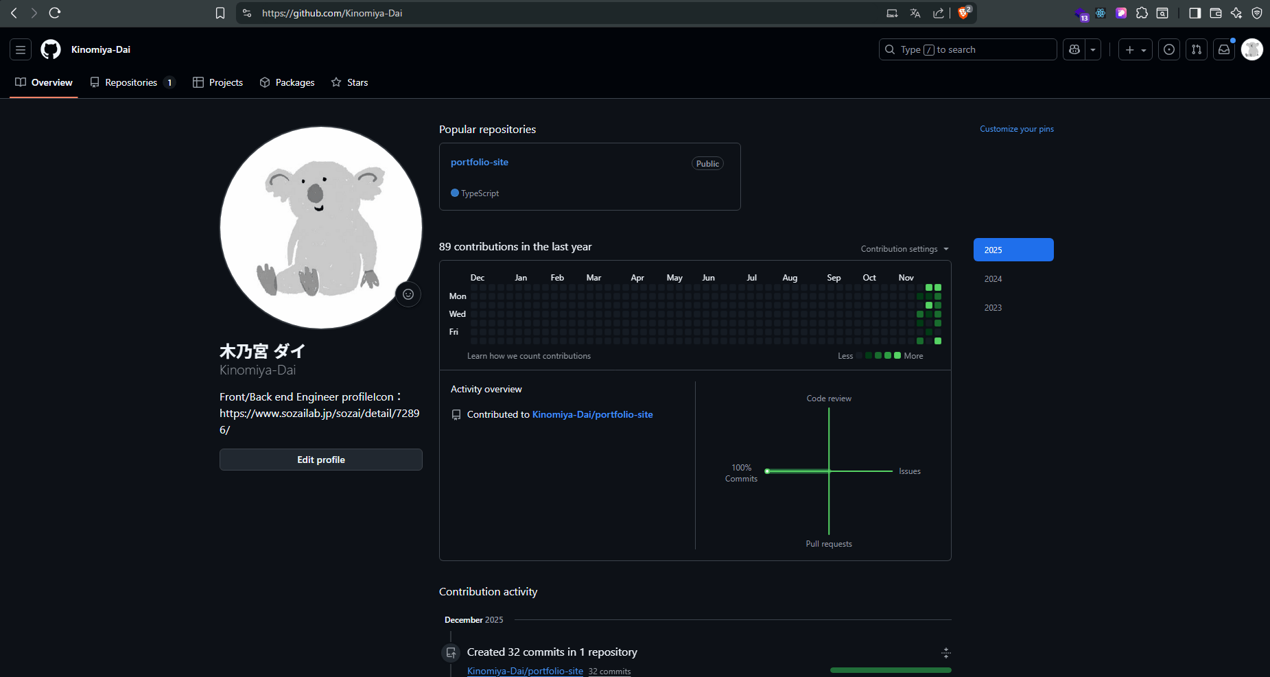 気づいていたのですが、ある程度ポートフォリオサイトも完成したということで、